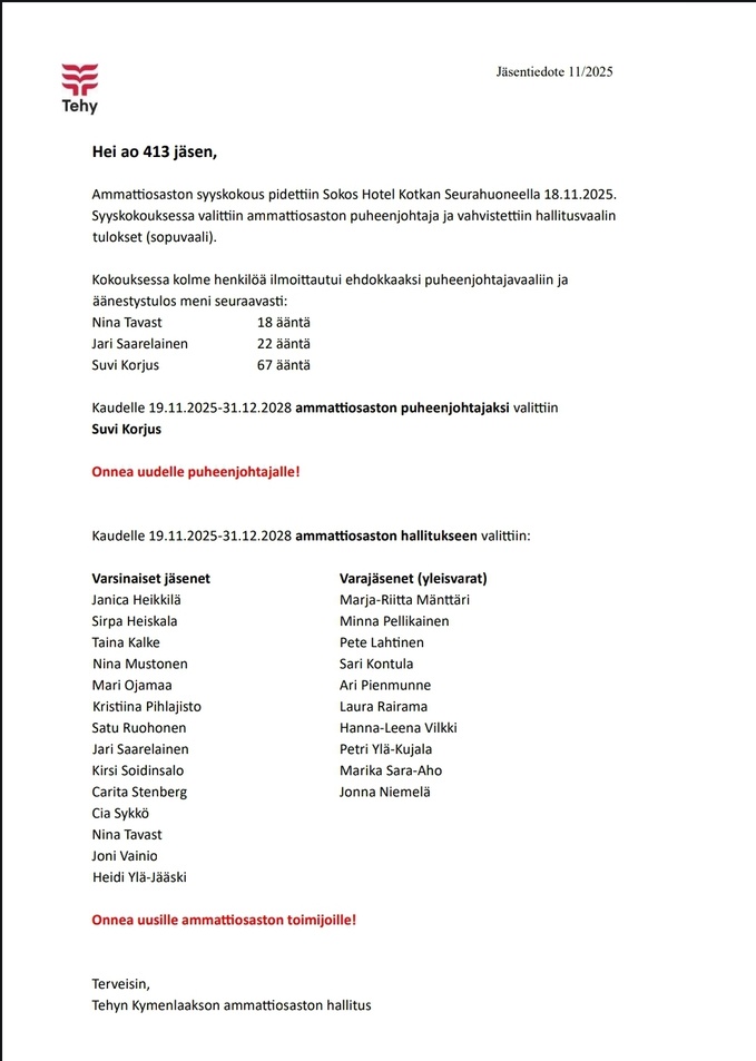 Ammattiosaston hallitusvaalit 2025