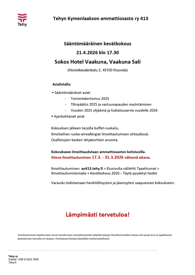 Tehyn Kymenlaakson ammattiosasto ry (413)